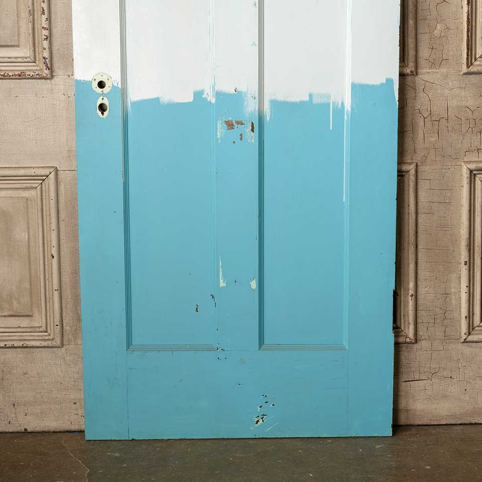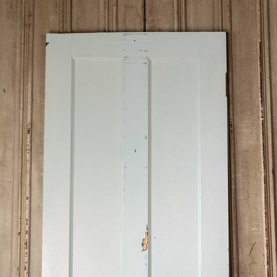 Architectural salvage antique painted wood vertical two panel interior door measuring approx. 30" wide x 79 3/4" tall x 1 3/8" thick. There's some wood loss on one side of the door. See photos to evaluate condition.