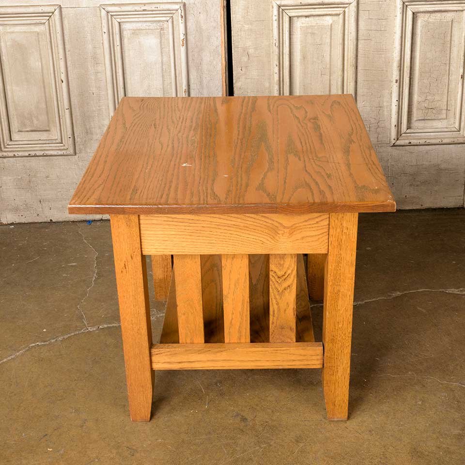 Architectural salvage solid oak wood end table measuring approx. 24" x 22" x 21" tall. See photos to evaluate condition.