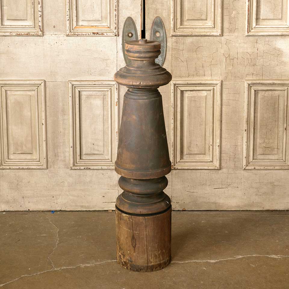 Architectural salvage antique large turned wood newel post measuring approx. 37 1/2" tall with a 5 1/2" diameter top and a 9 5/8" diameter base. See photos to evaluate condition.