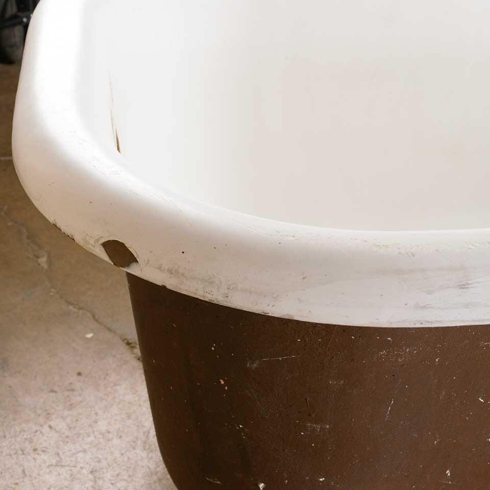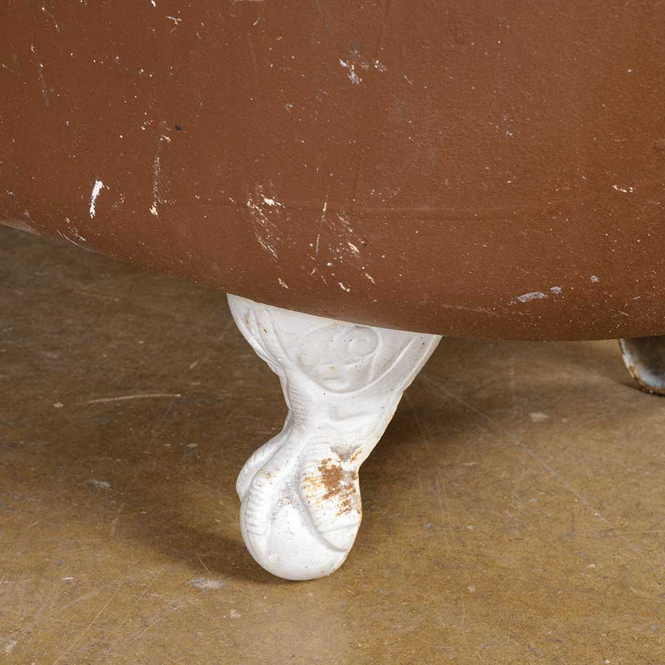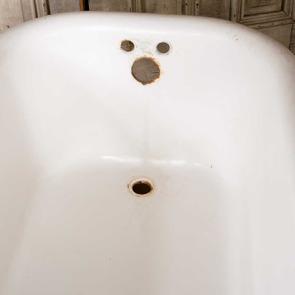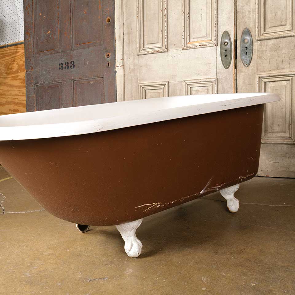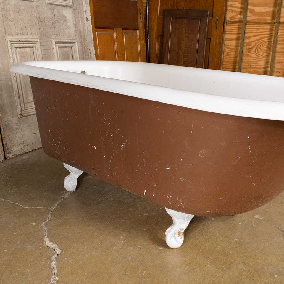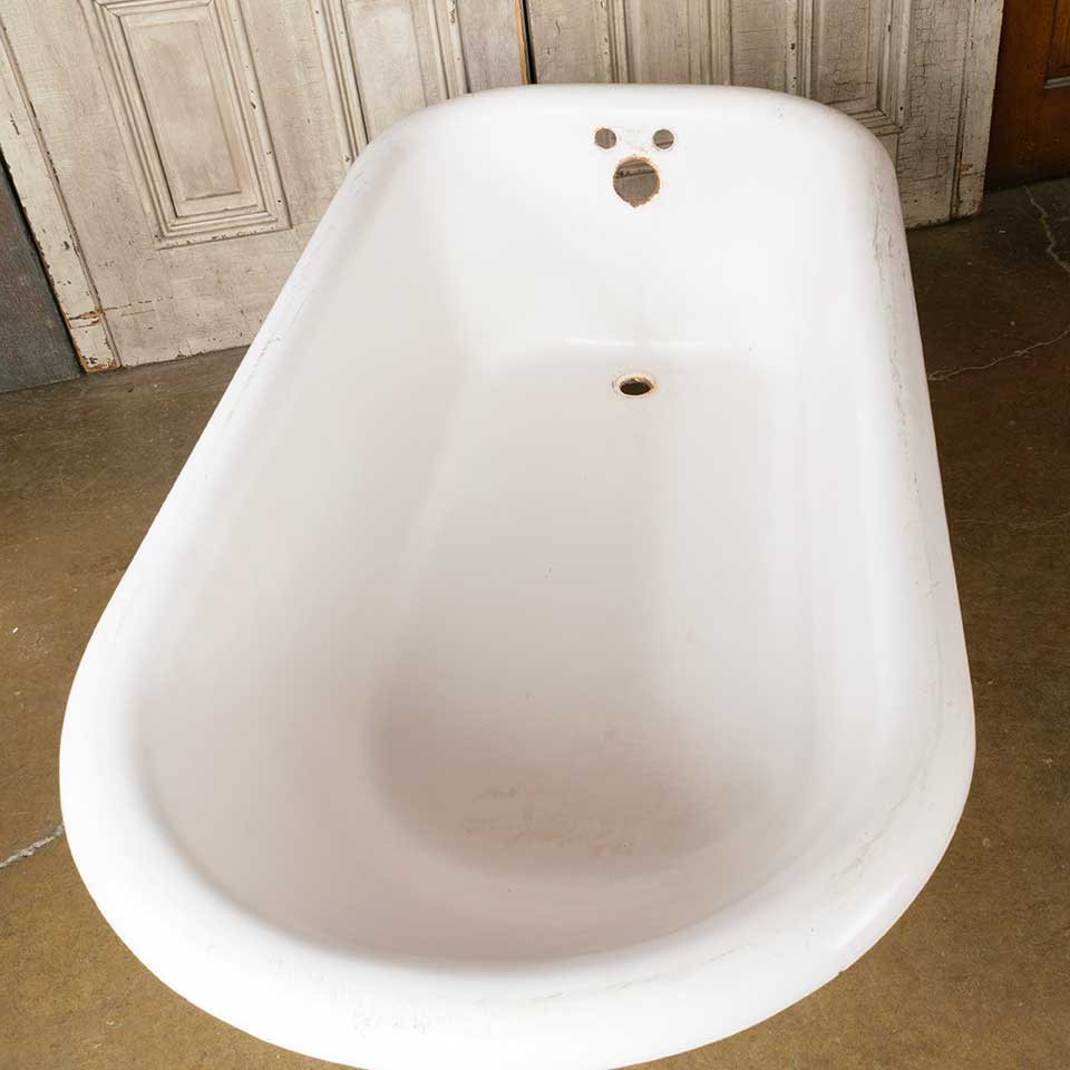 Architectural salvage antique porcelain enamel cast iron clawfoot bathtub measuring approx. 60" long x 30" wide x 22 1/2" tall. There's a chip and scratches in the porcelain on the rim. See photos to evaluate condition.