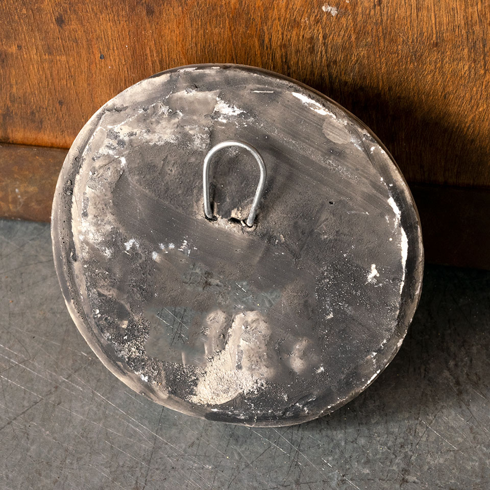 Cast plaster architectural lion head decorative medallion ornament measuring approx. 3 1/2" in diameter x 1 3/4" front to back. Color and condition may vary.
