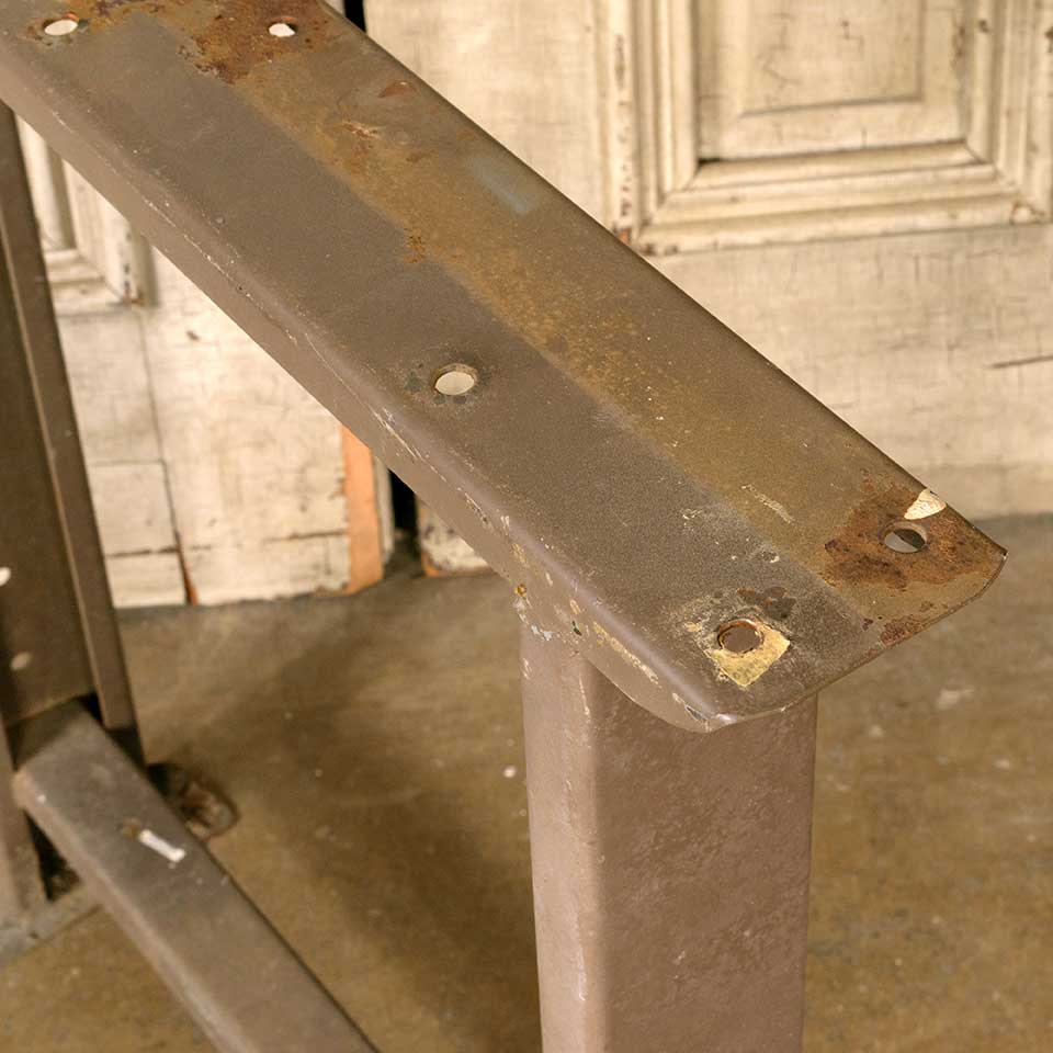 Salvaged vintage industrial metal table leg measuring approx. 27 3/4" wide x 27 1/2" tall x 4" front to back. Color and condition may vary.