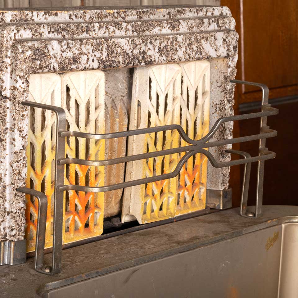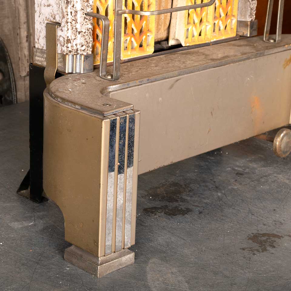 Architectural salvage antique Art Deco gas fireplace insert measuring approx. 24 1/2" wide x 19" tall x 11 1/2" front to back. One of the ceramic heating elements is missing. See photos to evaluate condition. Being sold for decorative purposes only.
