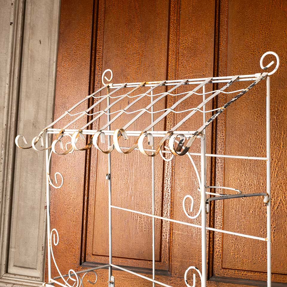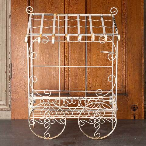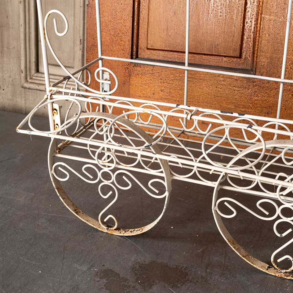 Painted metal plant stand measuring approx. 22 3/4" wide x 31 1/4" tall x 12" front to back. See photos to evaluate condition.