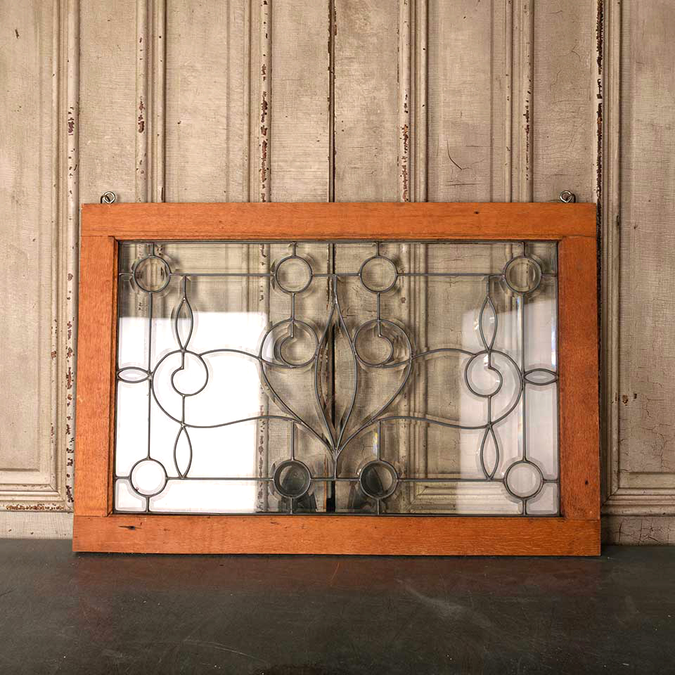 Architectural salvage antique leaded beveled glass window sash measuring approx. 37" wide x 24 3/4" tall x 1 1/4" thick. See photos to evaluate condition.
