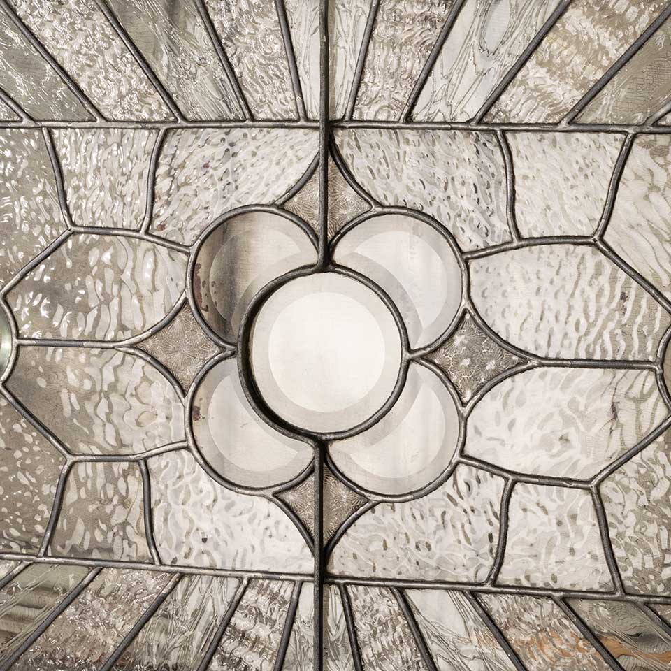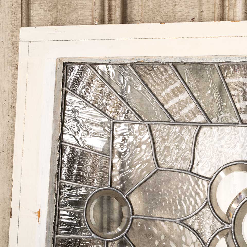 Architectural salvage antique leaded glass window sash measuring approx. 31 1/2" x 22" x 1 5/8" thick. There are some cracked panes but no missing glass. See photos to evaluate condition.
