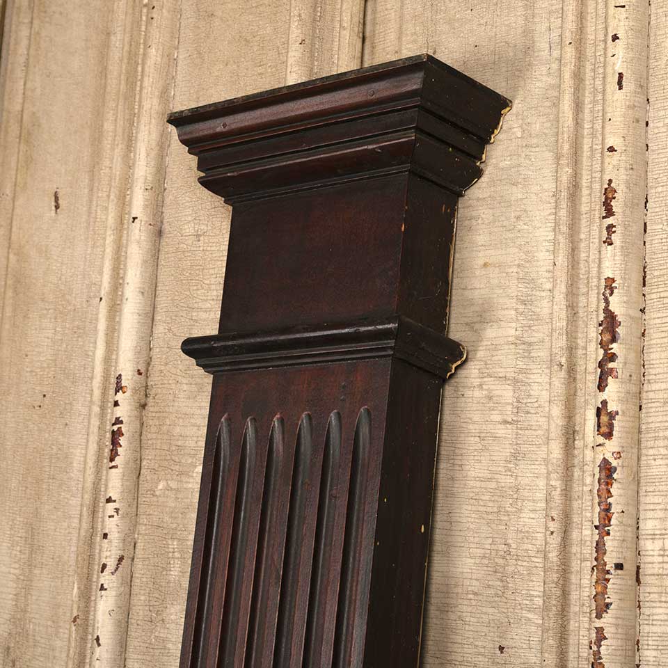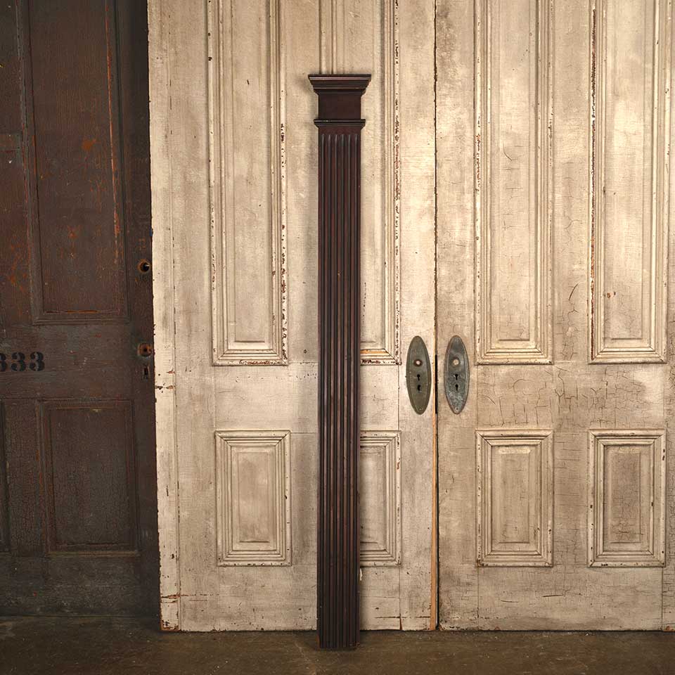 Architectural salvage antique fluted mahogany wood column pilaster trim piece measuring approx. 7 3/4" wide x 70 1/2" tall x 3" front to back. See photos to evaluate condition.